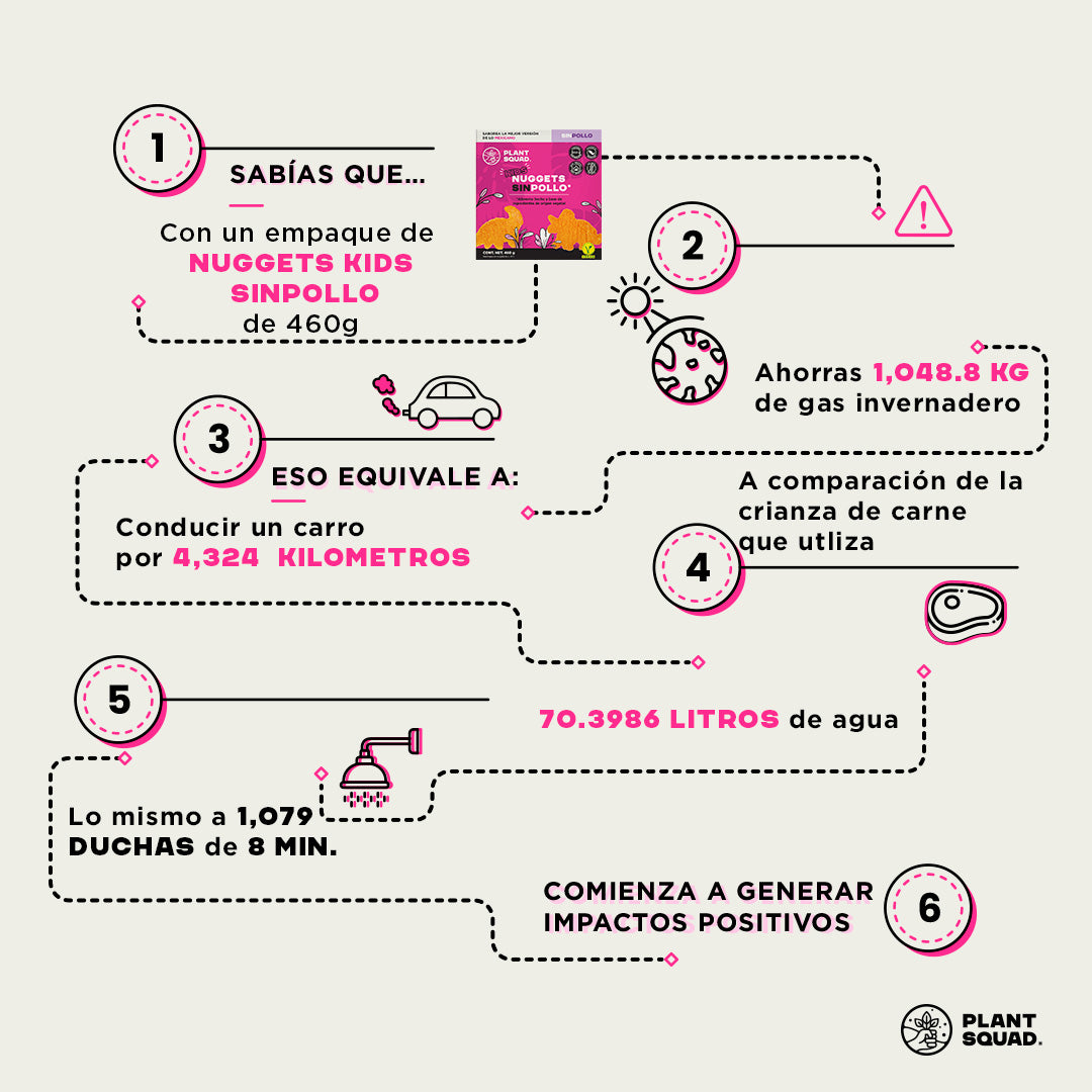 Nuestros increíbles nuggets de pollo a base de plantas, perfectos para los que buscan una opción saludable y sustentable. Con forma de dinosaurios son una opción deliciosa y divertida para los más pequeños. Disfruta su jugosidad y versatilidad en tus platos favoritos. Al elegir nuestra opción, cuidas el medio ambiente. ¡Es hora de saborear una alternativa consciente y deliciosa! Prueba nuestros nuggets SINPOLLO y descubre una nueva forma de disfrutar tus comidas.
