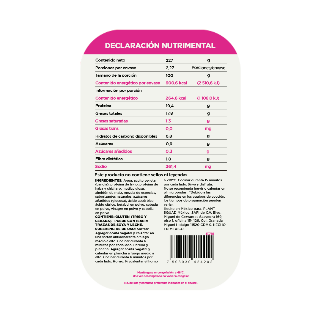 Descubre nuestra increíble hamburguesa de arrachera a base de plantas, diseñada para brindarte el auténtico sabor y jugosidad de una hamburguesa tradicional. Disfruta de su textura jugosa y su irresistible sabor a arrachera, pero a base de plantas. Nuestra HAMBURGUESA SINARRACHERA es perfecta para los que buscan una opción más saludable y sustentable. Además, al elegir nuestra hamburguesa, estás contribuyendo al cuidado del medio ambiente y al bienestar animal. ¡Descubre una nueva forma de disfrutar de una deliciosa hamburguesa con nuestra HAMBURGUESA SINARRACHERA!
